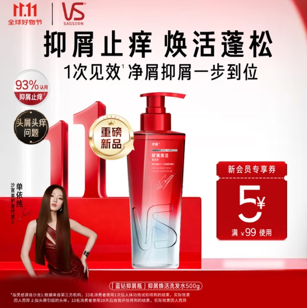 90.2元包邮!沙宣 钻石瓶抑屑焕活洗发水500g*2+赠PLUS会员 京典年卡