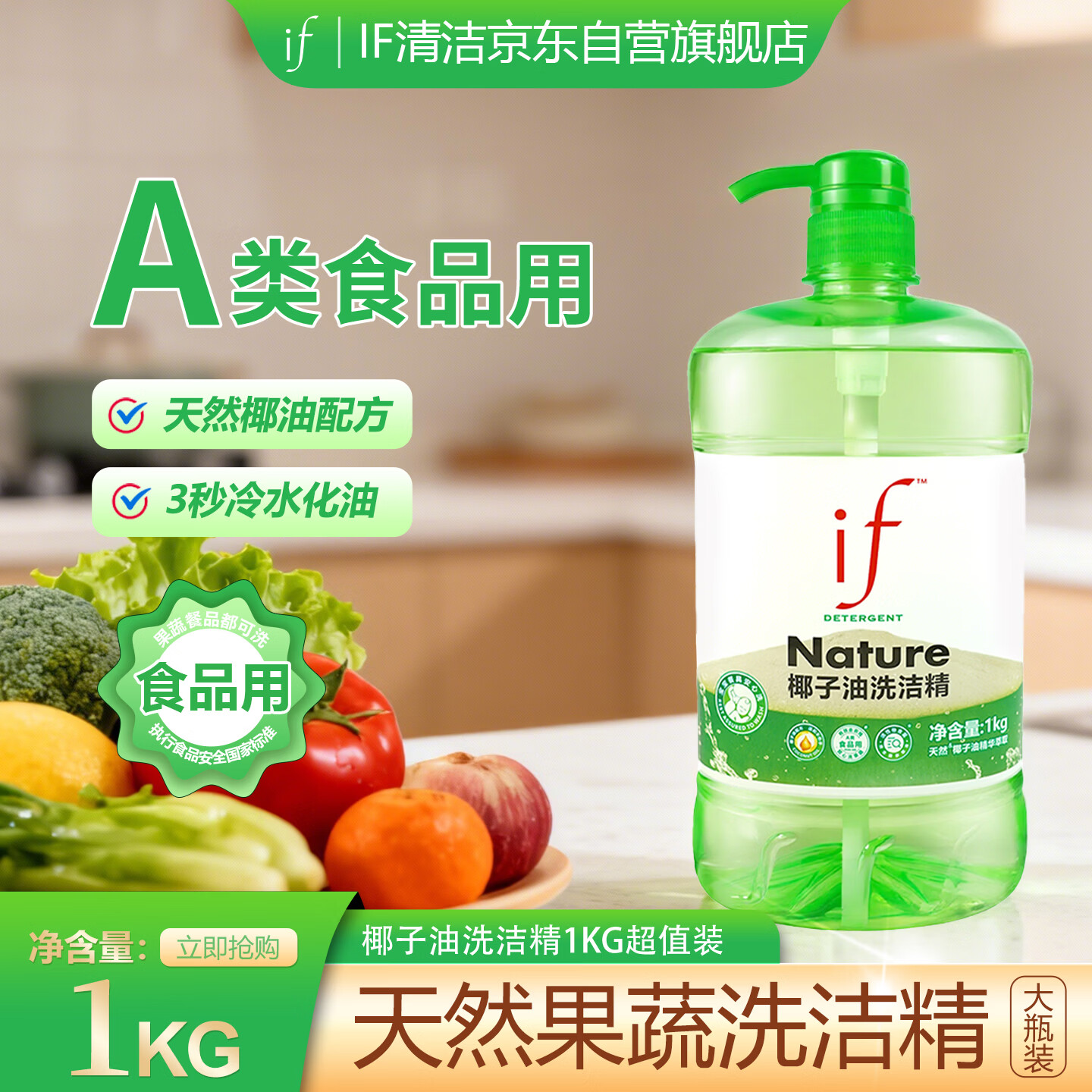 IF洗洁精家庭装1kg/1.06kg高效去油除味食品级 最终到手价7.34元起