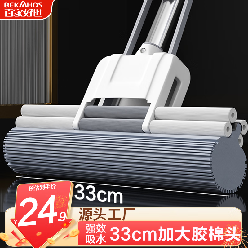 百家好世胶棉拖把33cm首购价16.6元,赠维达厨房纸