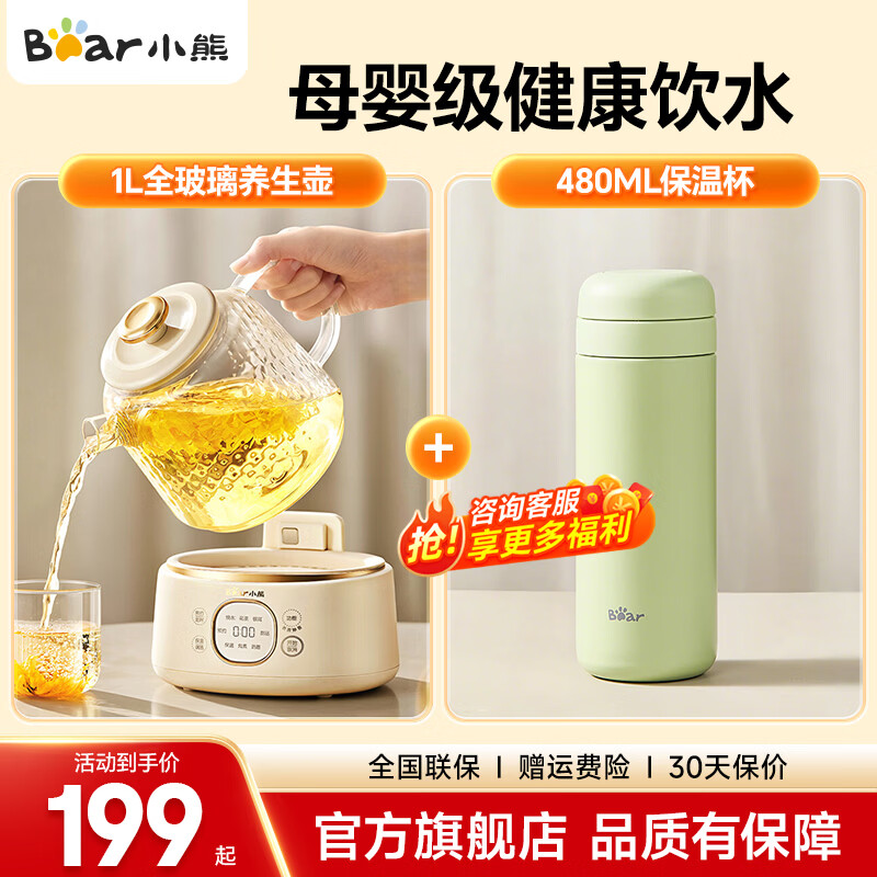 小熊全玻璃养生壶套装到手159.2元,保温杯单独价值39
