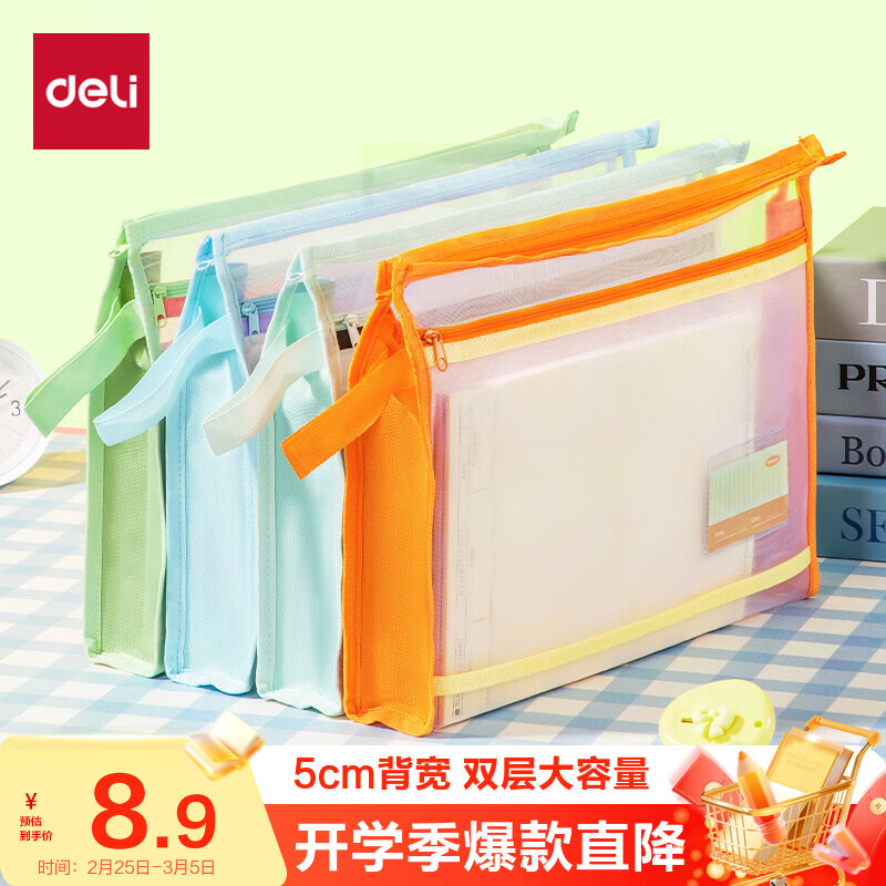 得力大背宽加厚双层透明科目袋,plus 任选 3 件仅 21.3 元!
