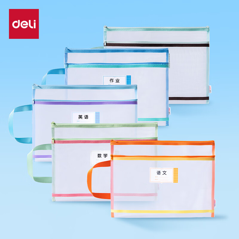 得力双层网纱科目袋仅15.9元!收纳清晰学生必备