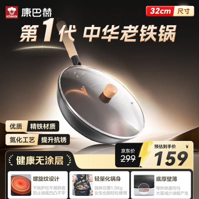 59.5元包邮!康巴赫无涂层老铁锅一代