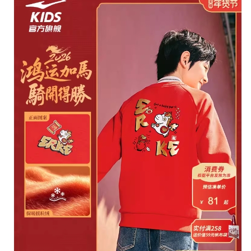 13元!鸿星尔克童加绒卫衣