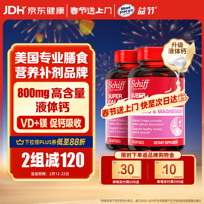 旭福液体钙90粒*2瓶最终到手237元!PLUS会员专享补钙特惠