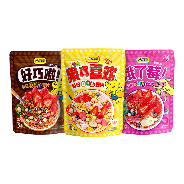 小黄象儿童麦片酸奶水果坚果燕麦片果粒谷物脆营养冲饮早餐即食。