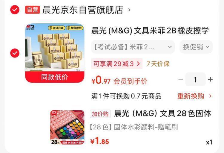 晨光文具大促!橡皮仅 0.99 元,28 色水彩颜料换购价 1.85 元