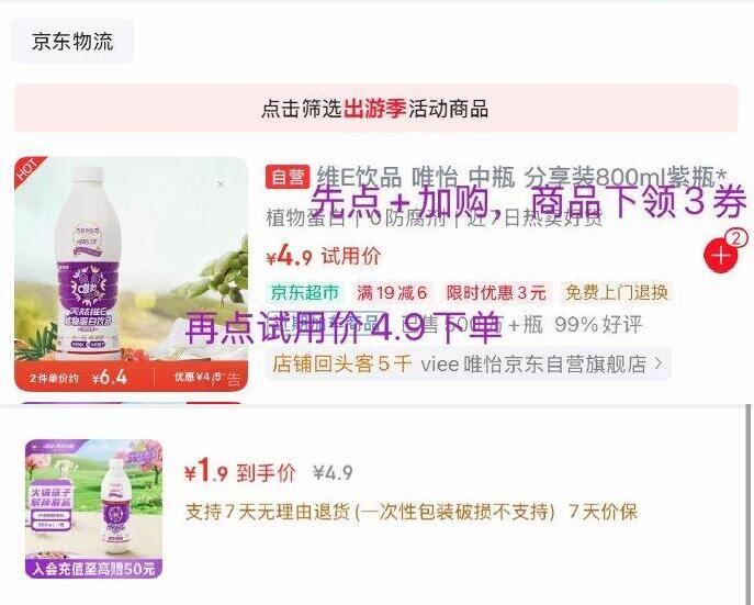 上方商品领取优惠券,促销改成3件7折,叠加APP端小葵花8元首购金,Plus会员京东APP实付48.08元(需要免邮券带回)