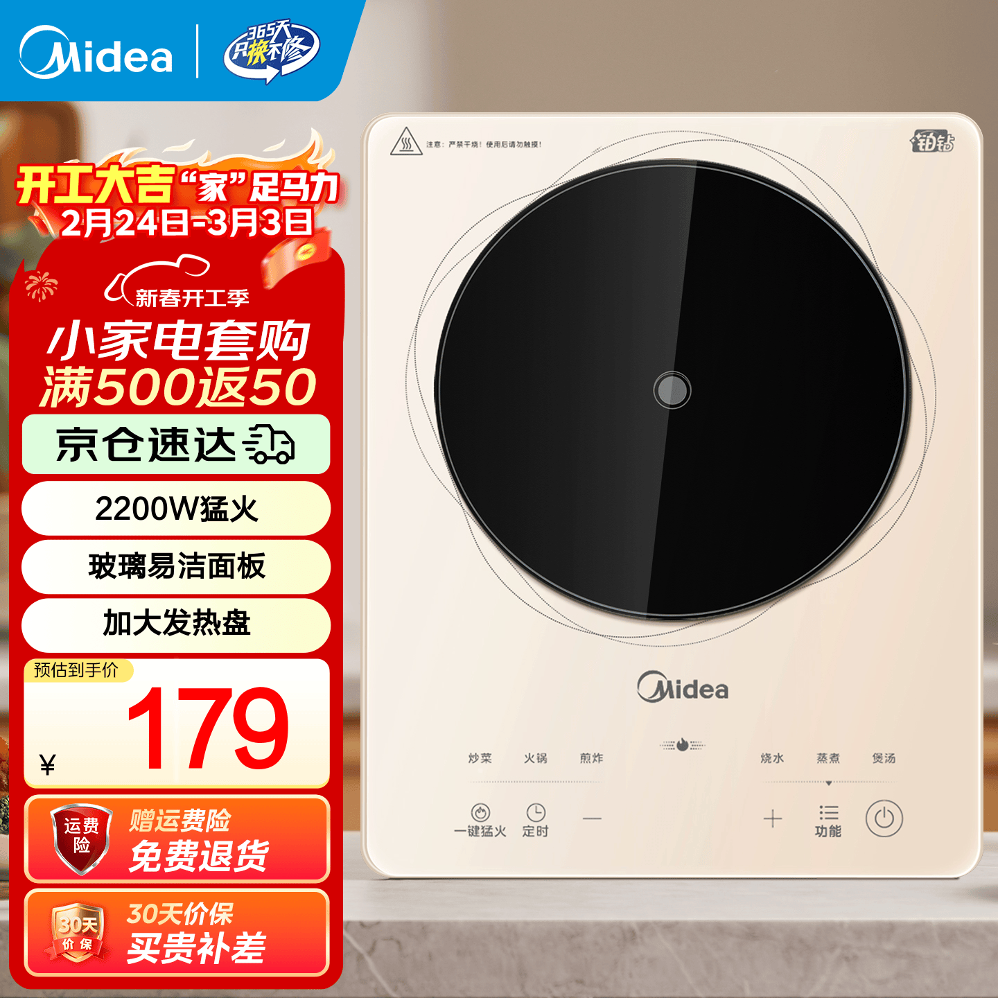 美的厨房电器大促:2200W 电磁炉仅 179 元,青瓷电饭煲低至 199 元起