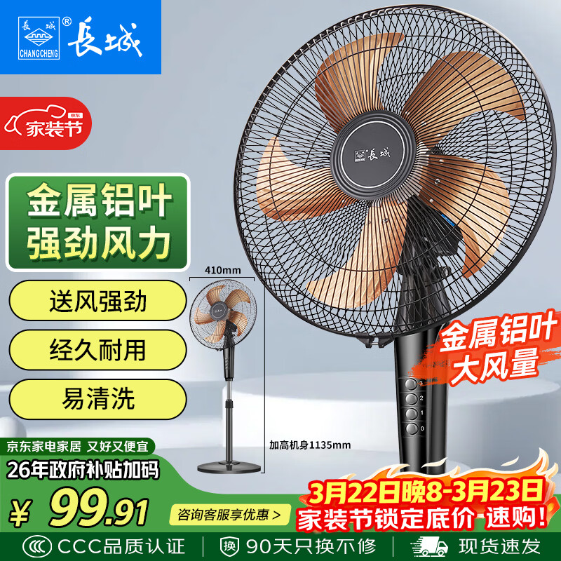 自营长城落地扇铝叶大风量,政府补贴后仅需69.3元