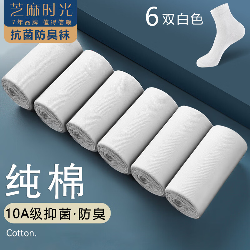 芝麻时光 10A 级抗菌纯棉袜拍 1 发 6 双仅需 19.9 元
