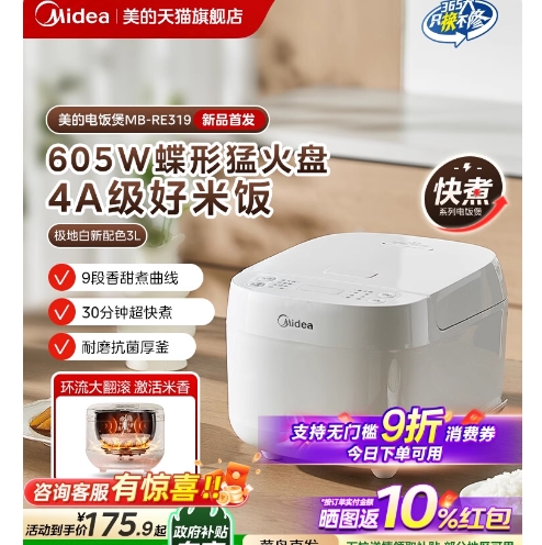119元!美的.快煮电饭煲3L(收到之后晒图返10元)