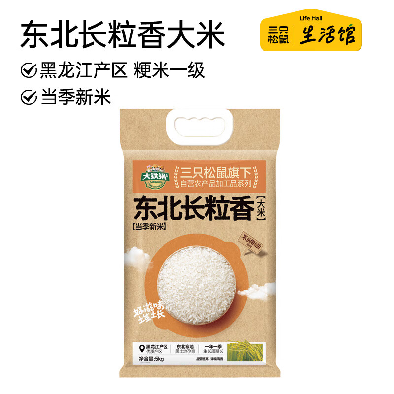 三只松鼠东北长粒香大米5kg,首购拍2件仅需52.8元