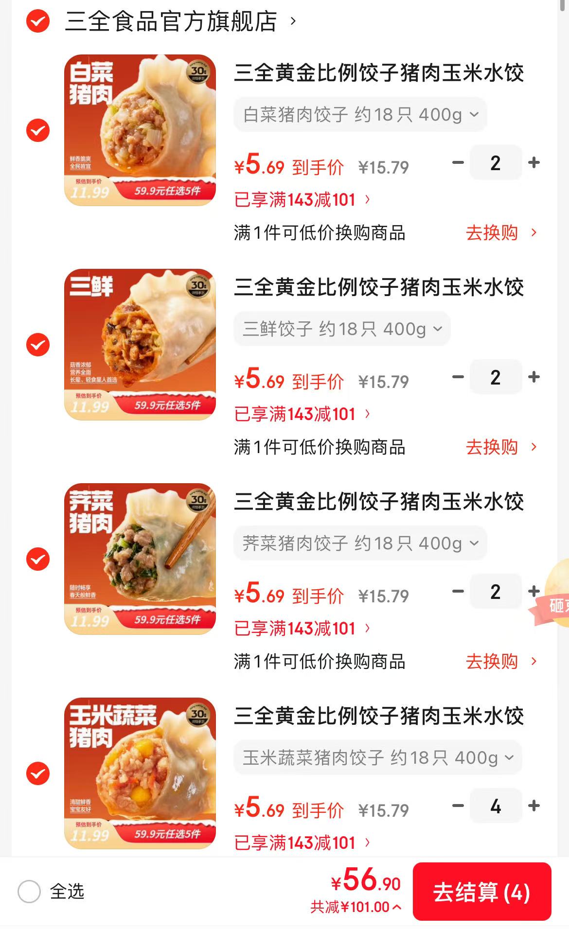 目前售价126.9元,领取22元优惠券,商品页面下滑详情页面领取99-10元生鲜券,促销满1件9折,凑单一件,叠加满300-50元促销,折合喜茶实付61.4元包邮。