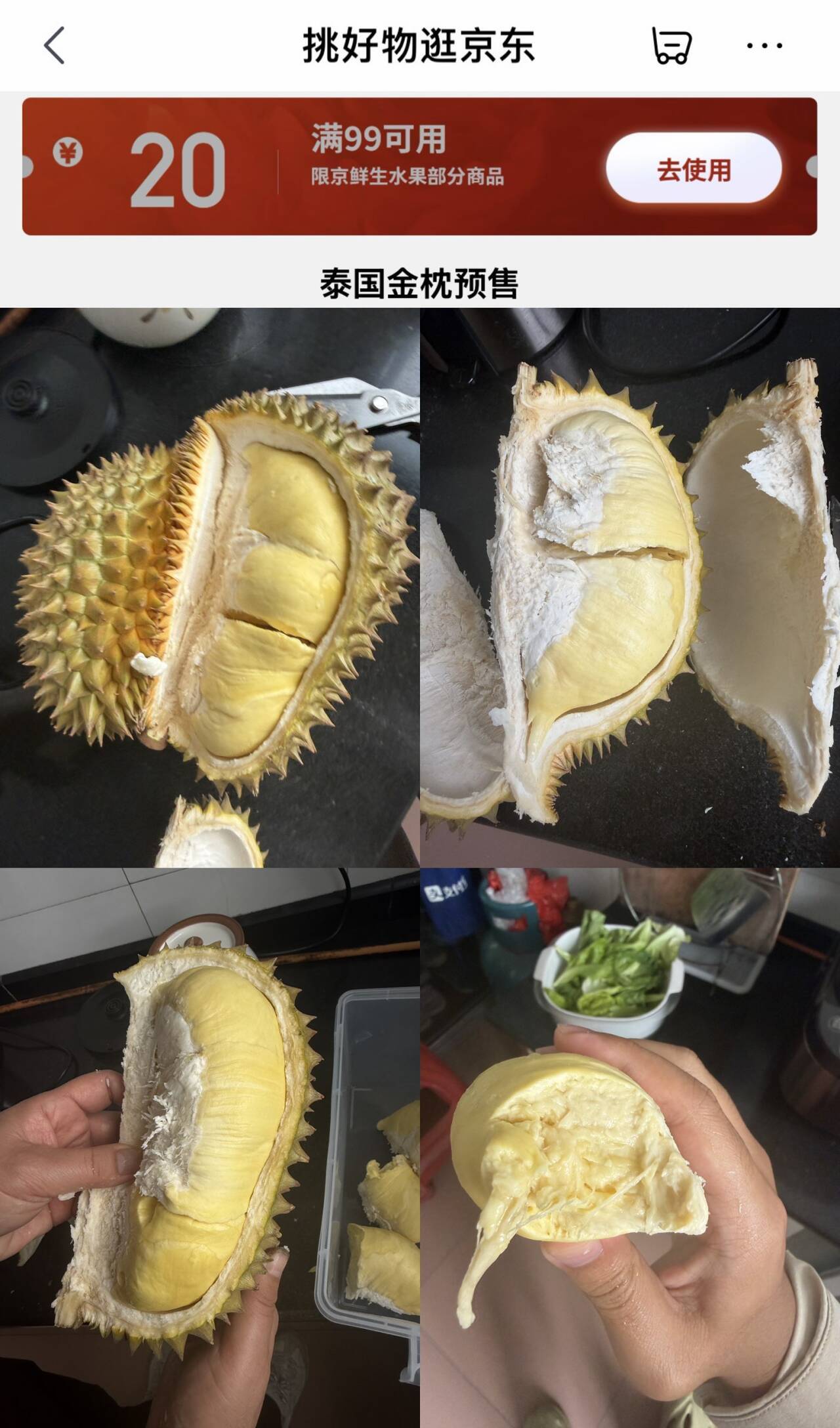 京东自营泰国金枕榴莲预售:领券低至25元/斤,四房饱满品质优
