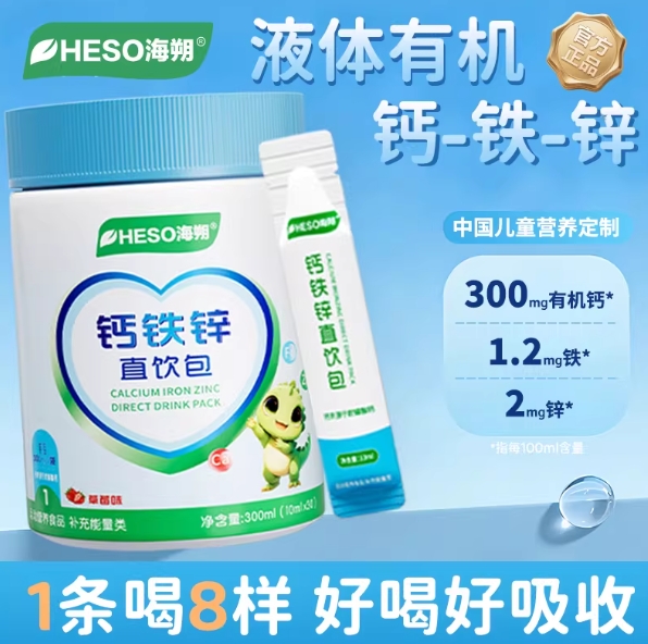 38.9元包邮!HESO海朔钙铁锌DHA直饮包60条