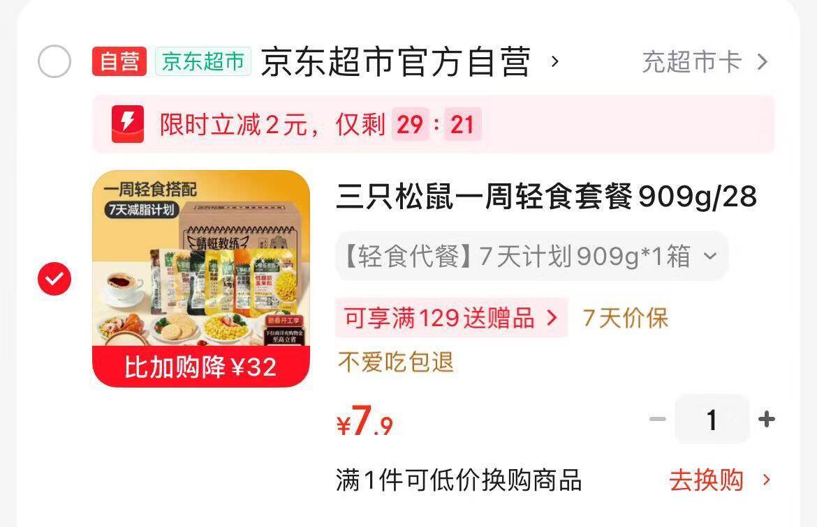 三只松鼠一周轻食套餐限时7.9元!909g/28袋高蛋白鸡胸肉黑咖啡,健康健身即食零食疯抢