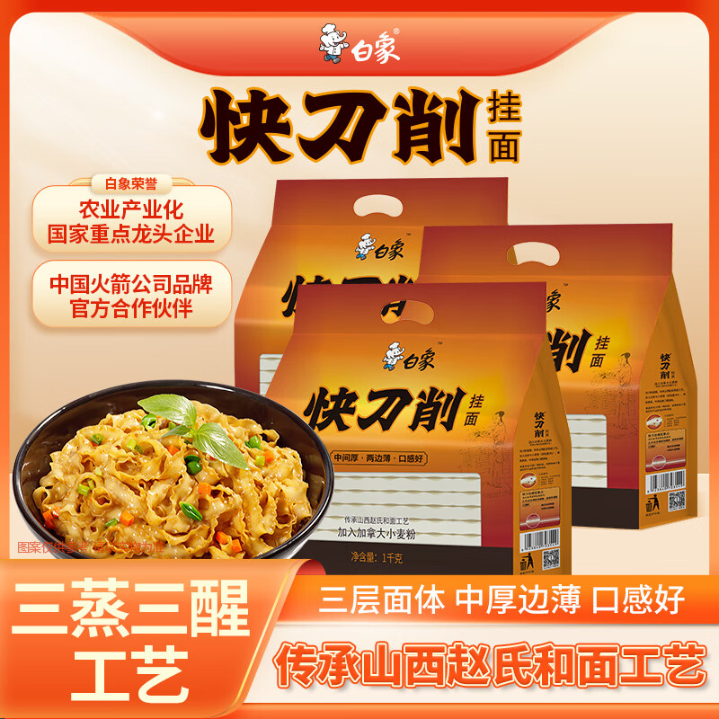 学生专享立减7.9元!白象刀削面1kg*3包劲道速食面限时抢购