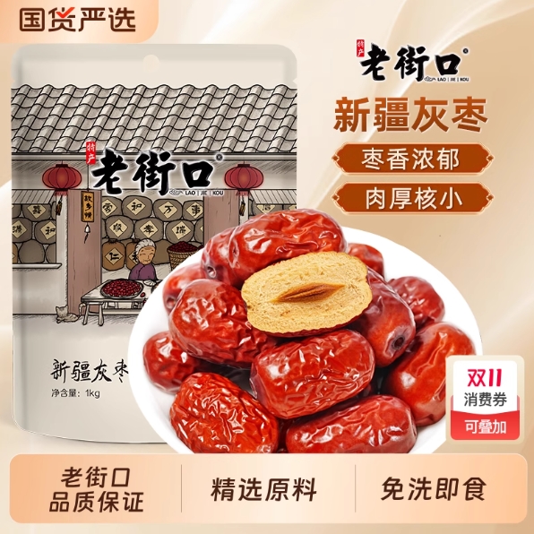 11元包邮!老街口. 新疆灰枣500克*2袋