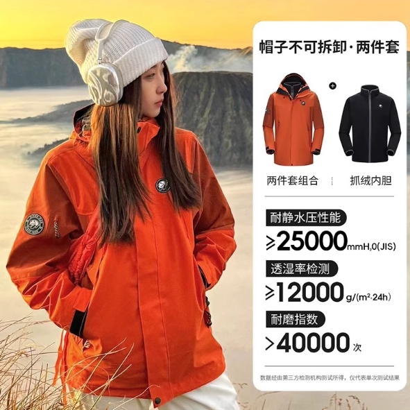 263元!骆驼熊猫系列户外 冲锋衣男女同款三合一