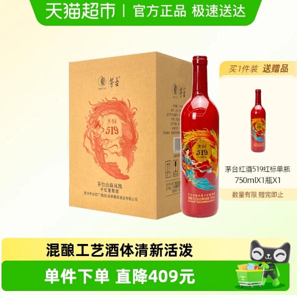 180元包邮!茅台 赤霞珠 美乐 干红葡萄酒 750ml*6瓶 整箱装