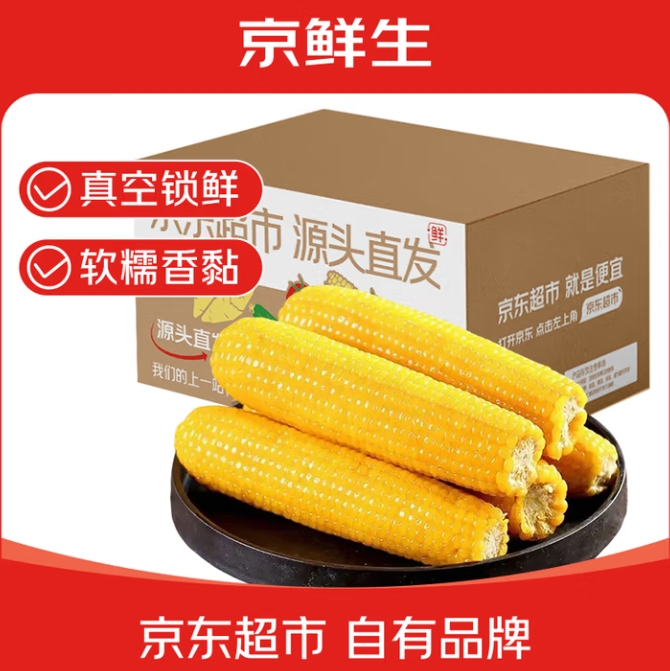 7.66元包邮!京鲜生 东北黄糯玉米 220g*8 真空包装