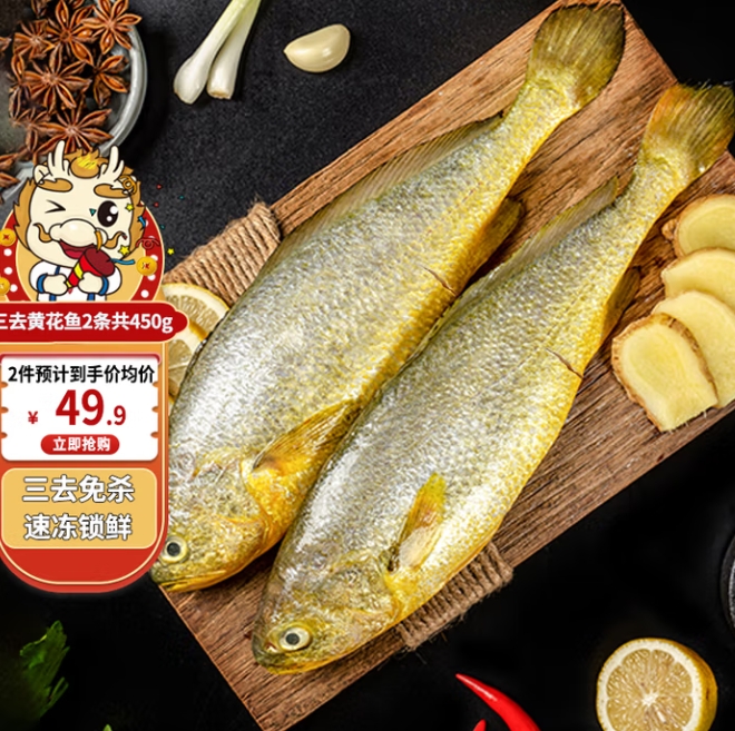 44.9元!三都港 三去黄花鱼 4条装 共1.8斤