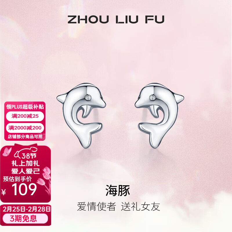 周六福耳饰低至59元!925纯银海豚/太阳花等多款特惠,京东Plus会员领券速抢
