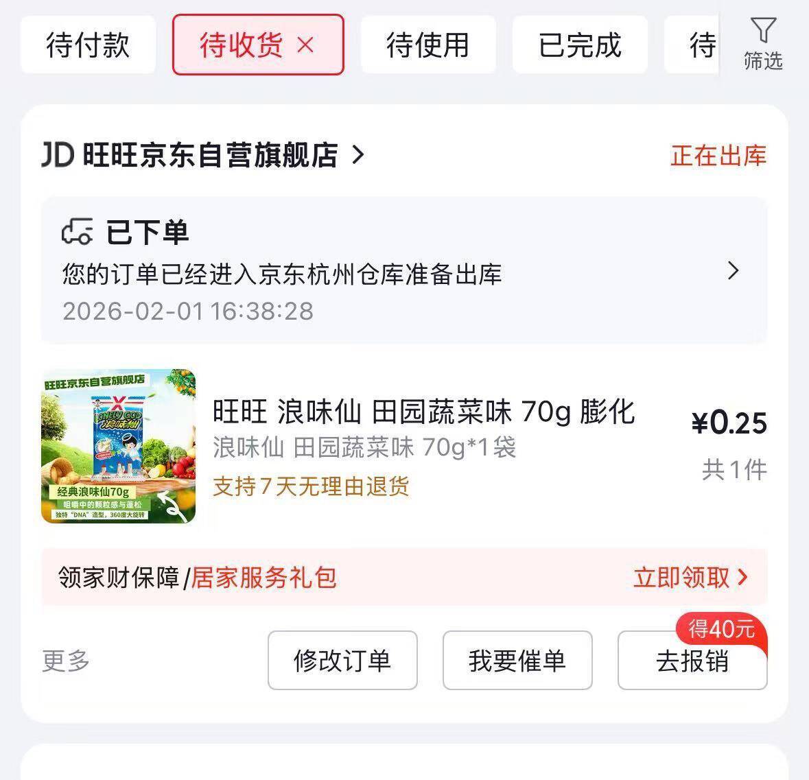 旺旺浪味仙0.25元到手价