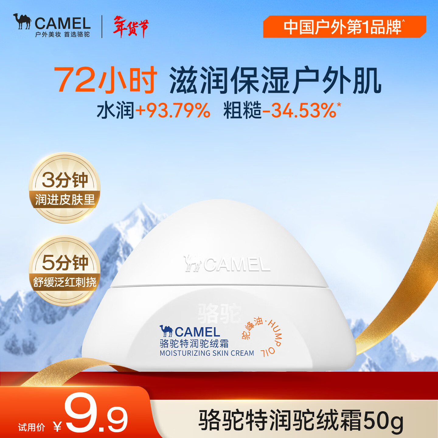 骆驼户外滋润修复面霜9件0元