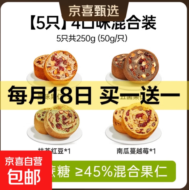 13.99元包邮!碧翠园全麦车轮坚果面包全口味250g 共10只(含赠)