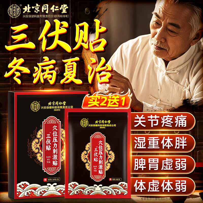 同仁堂三伏贴30贴+关节膏药贴大促!9.4折限时首单13元0元购