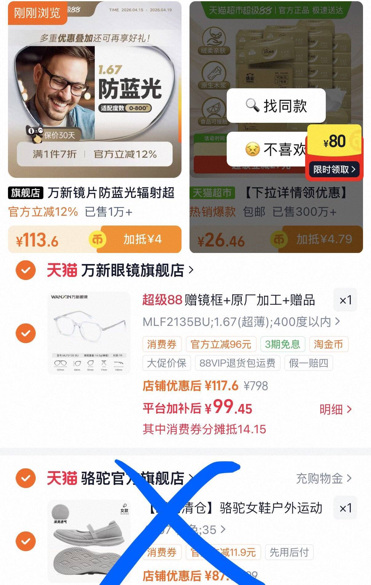 万新1.67防蓝光镜片镜框 99元