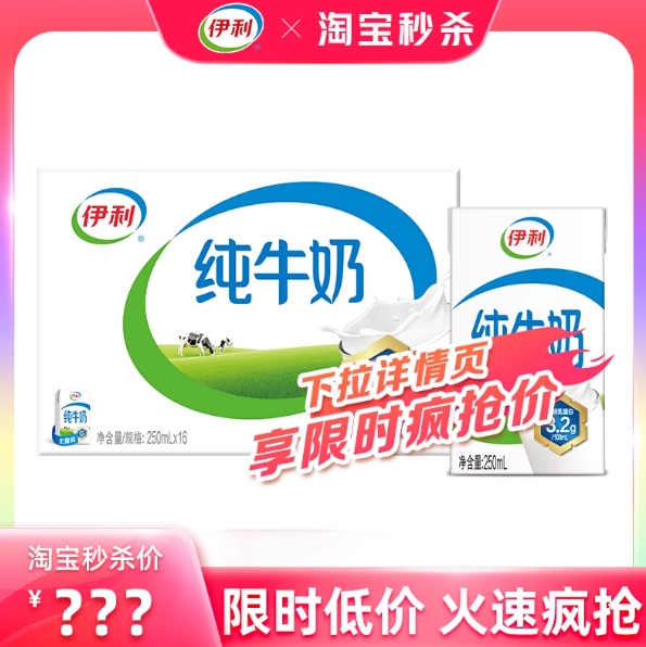 27.9元包邮!伊利.纯牛奶250ml×16盒