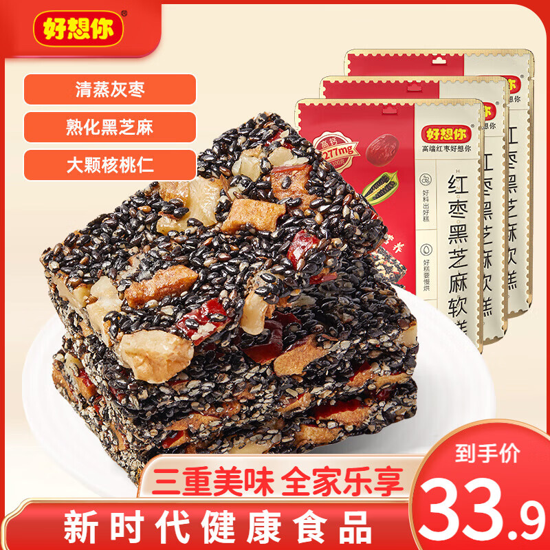 好想你零食合集:红枣黑芝麻软糕21.9元、黑芝麻丸27.5元