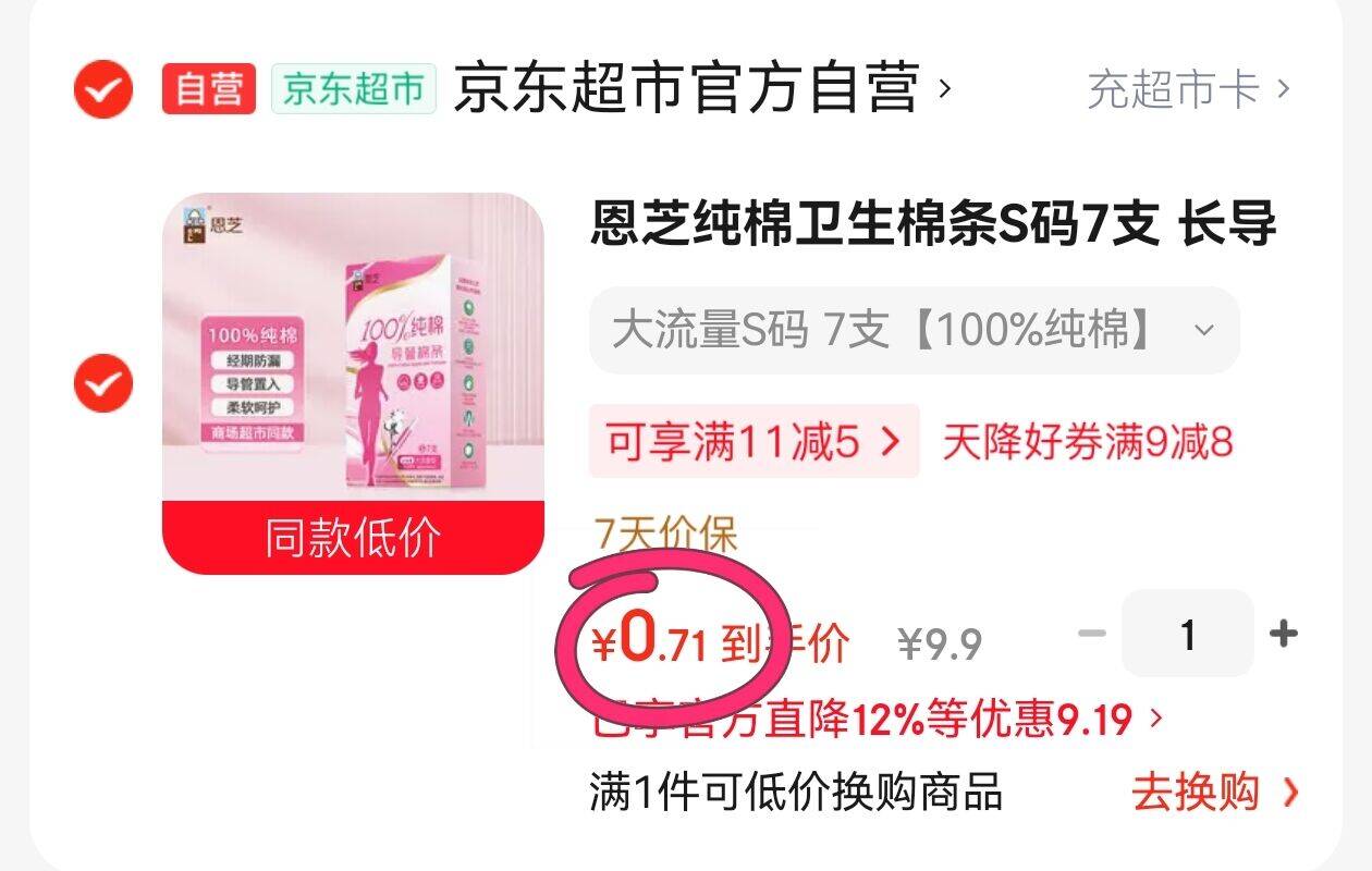 恩芝棉条0.7元超值换购,卫生巾界性价比之王