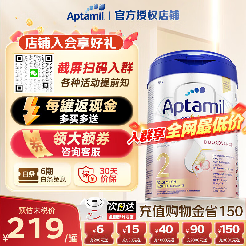 爱他美婴儿奶粉德白2段800g,最终到手价194.4元/罐