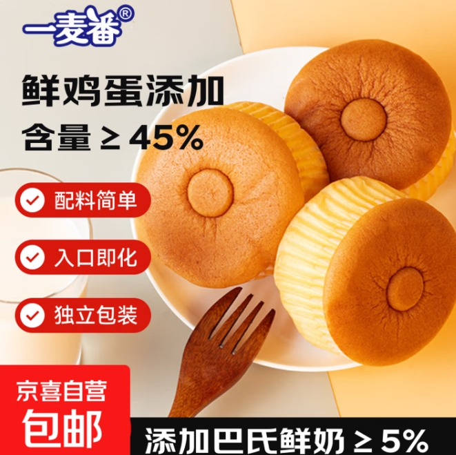 10.9元包邮,一麦巴氏‼️三只松鼠同厂 鲜奶蛋糕15个800g
