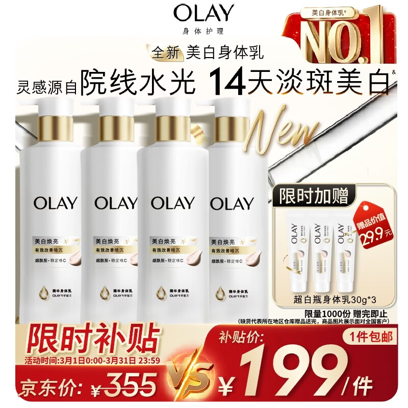 OLAY超白瓶美白身体乳4瓶装到手199元