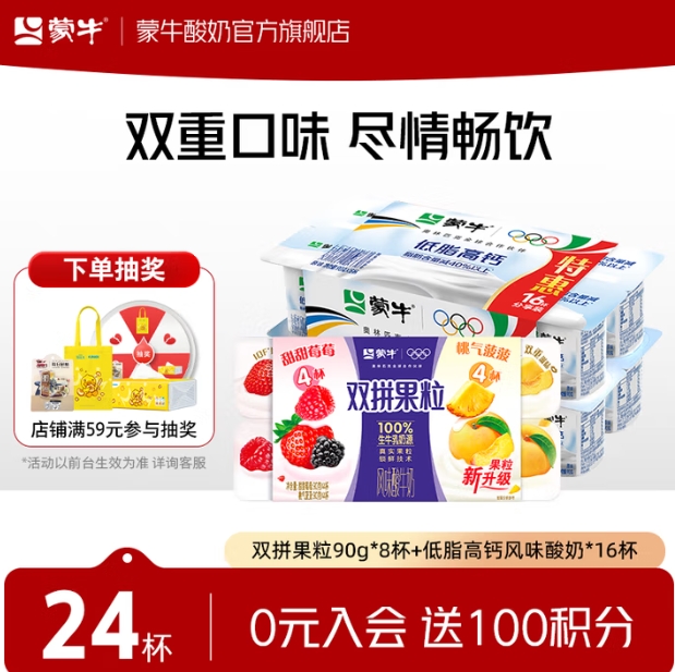 27.9元包邮!蒙牛 双拼果粒0蔗糖酸奶杯24杯