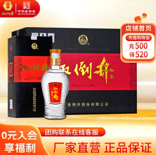 89元包邮!扳倒井白酒52度福井500mL*6瓶