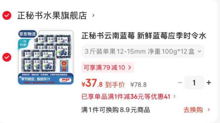 新鲜蓝莓礼盒12盒仅需36元,单盒低至3元速抢