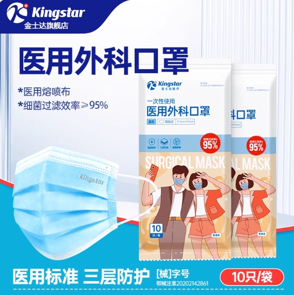12.8元包邮!金士达医用灭菌口罩独立包装90只
