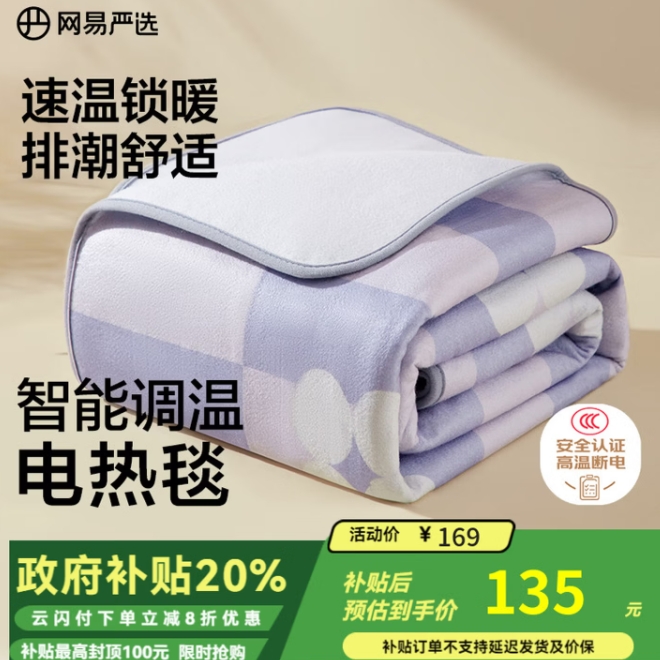 59.9元!网易严选 电热毯 200*180cm
