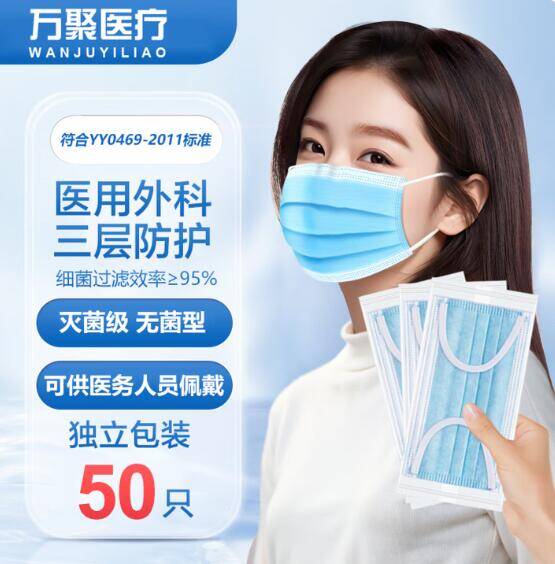 【限时抢购】万聚医疗医用外科口罩50只仅8.9元!平均每只0.1元超值防护