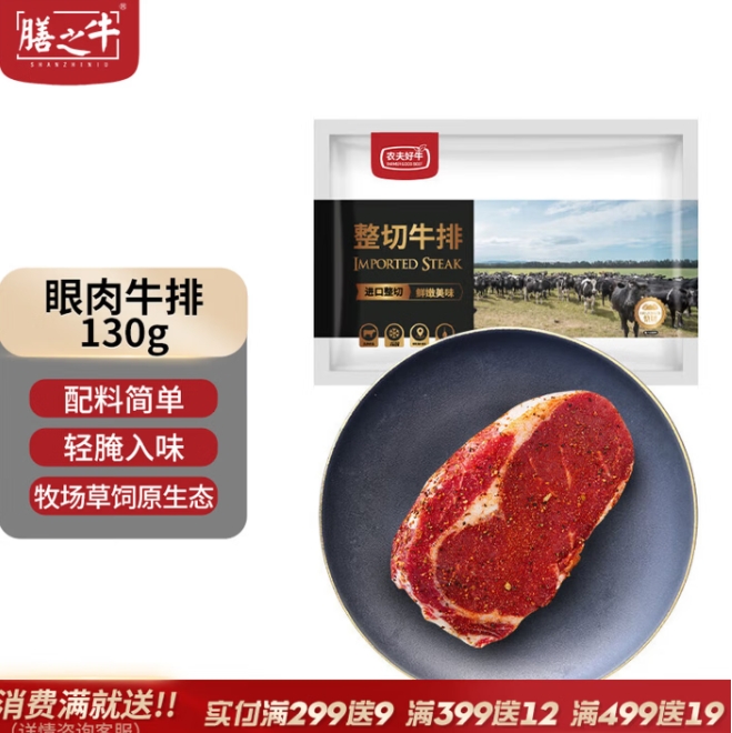 7.27元!膳之牛x农夫好牛 整切微腌调理眼肉牛排130g