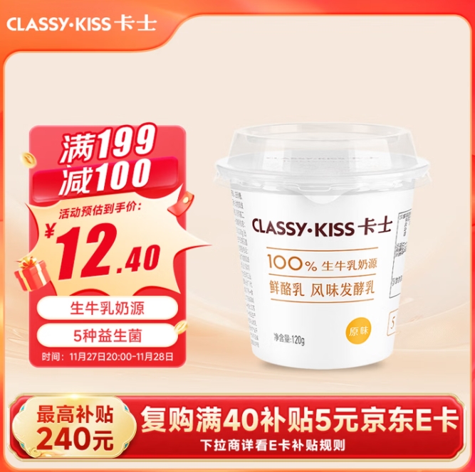 61元包邮!卡士 原味发酵乳 酸奶120g*6杯*7件