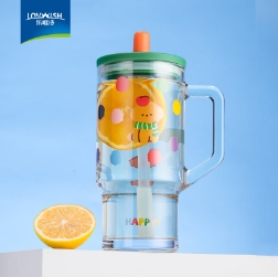 7.9元包邮!乐唯诗 卡通玻璃吸管杯620ml