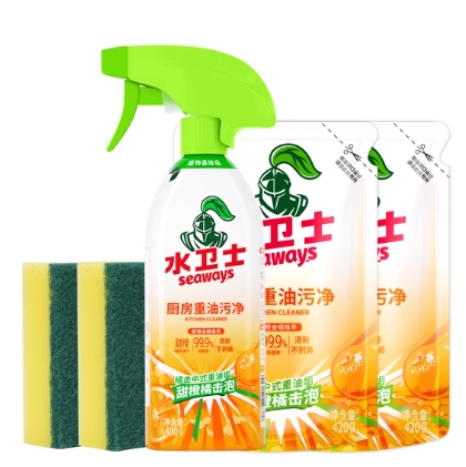 13.6元包邮!水卫士厨房重油污净油烟1瓶+2袋