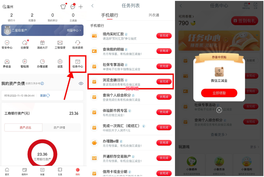 【工行浏览日历抽2~8元立减金】工行APP->我的任务中心->完成浏览日历任务抽2~8元微信立减金!